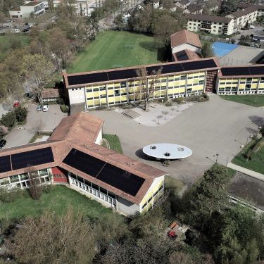 Das Schulhaus in Zürich Schwamendingen wurde in den Fünfzigerjahren erbaut und beherbergt rund 15 Schulklassen und 30 Lehrpersonen. Das Projekt ist ein gelungenes Beispiel dafür, dass sich objektangepasste Solaranlagen auch auf denkmalgeschützten Gebäuden realisieren lassen. Unsere Anlage erfüllt die strengen baukulturellen Erhaltungsziele und entspricht den Vorgaben des «Bundesinventars der schützenswerten Ortsbilder der Schweiz von nationaler Bedeutung».